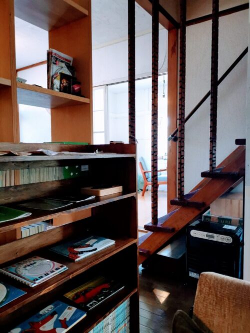 本棚には絵本、小説、雑誌など様々な本がたくさん。