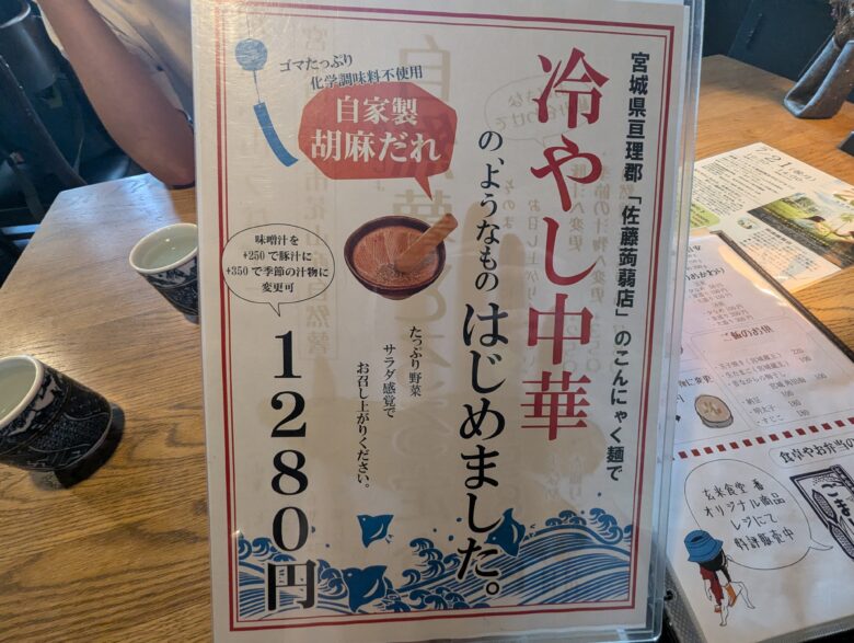 こんにゃく麺を使ったヘルシーだけど、自家製のごまダレでコクもちゃんとある不思議な冷やし中華。