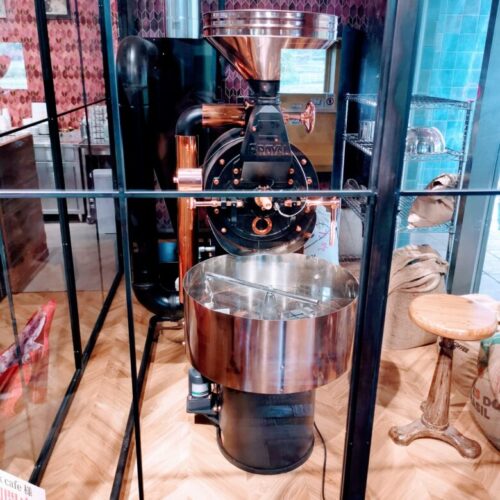 入り口にある大きな焙煎機は、特注の焙煎機で世界に一つだけの焙煎機とのこと!