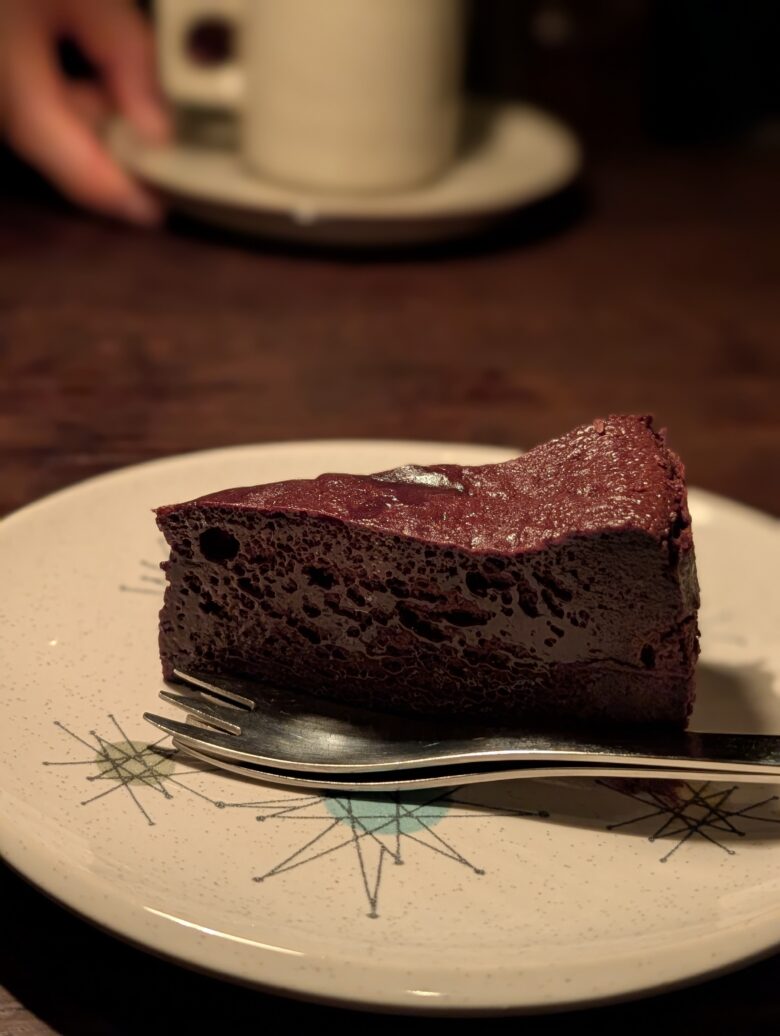マスターの奥さま手作りのチョコレートケーキは、濃厚でなめらかで生チョコのよう。