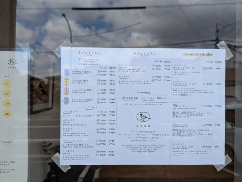 青葉区中山に2024年11月にOPENした「文月珈琲(フミヅキコーヒー)」は、おいしいカフェインレスコーヒーが味わえるカフェ!