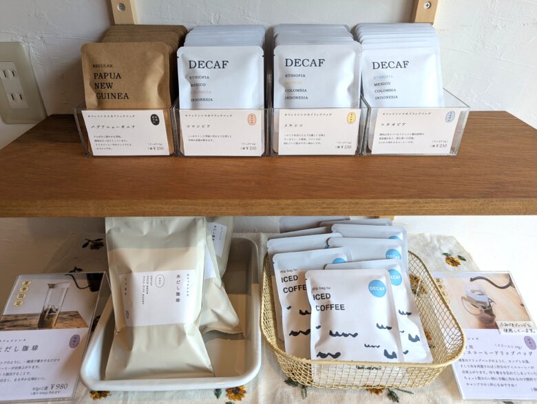 ドリップコーヒーや水出しコーヒーも購入できます。