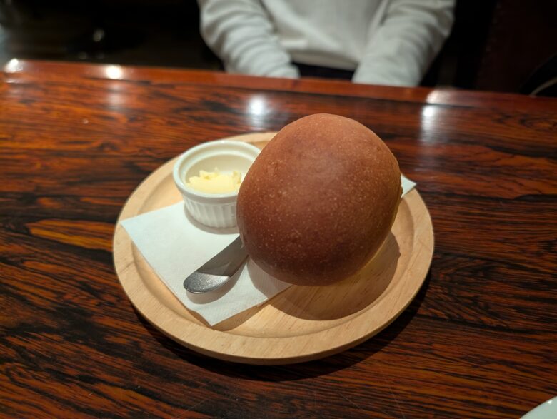 手ごねパンかライスが選べる。
