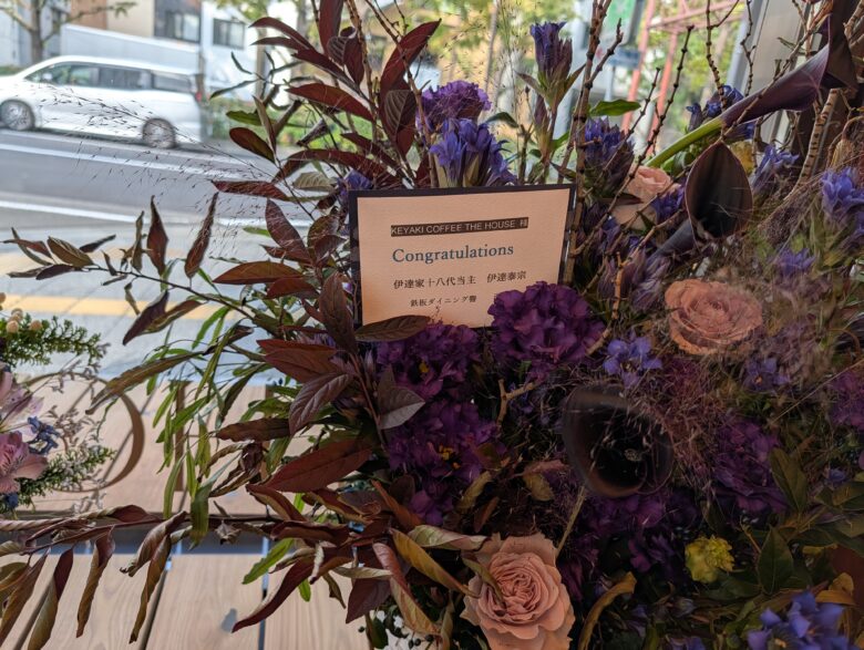伊達家十八代当主 伊達泰宗さんからのお祝いのお花もあった!