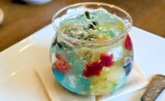 デザートはブルーベリーのパンナコッタ、びわとプラムのコンポート、ルバーブのタルト。